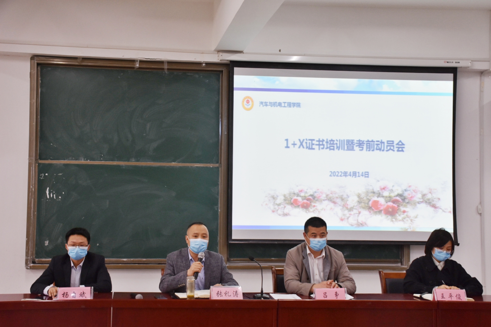 为扎实推进1+X证书制度试点工作的开展,我院于4月14日下午组织召开了1+X智能网联汽车检测与运维职业技能等级证书考试培训动员会,院长吕争、副院长王平俊和培训教师、辅导员及全体2020级汽车类专业学生参加会议,会议由党总支副书记张礼涛主持。