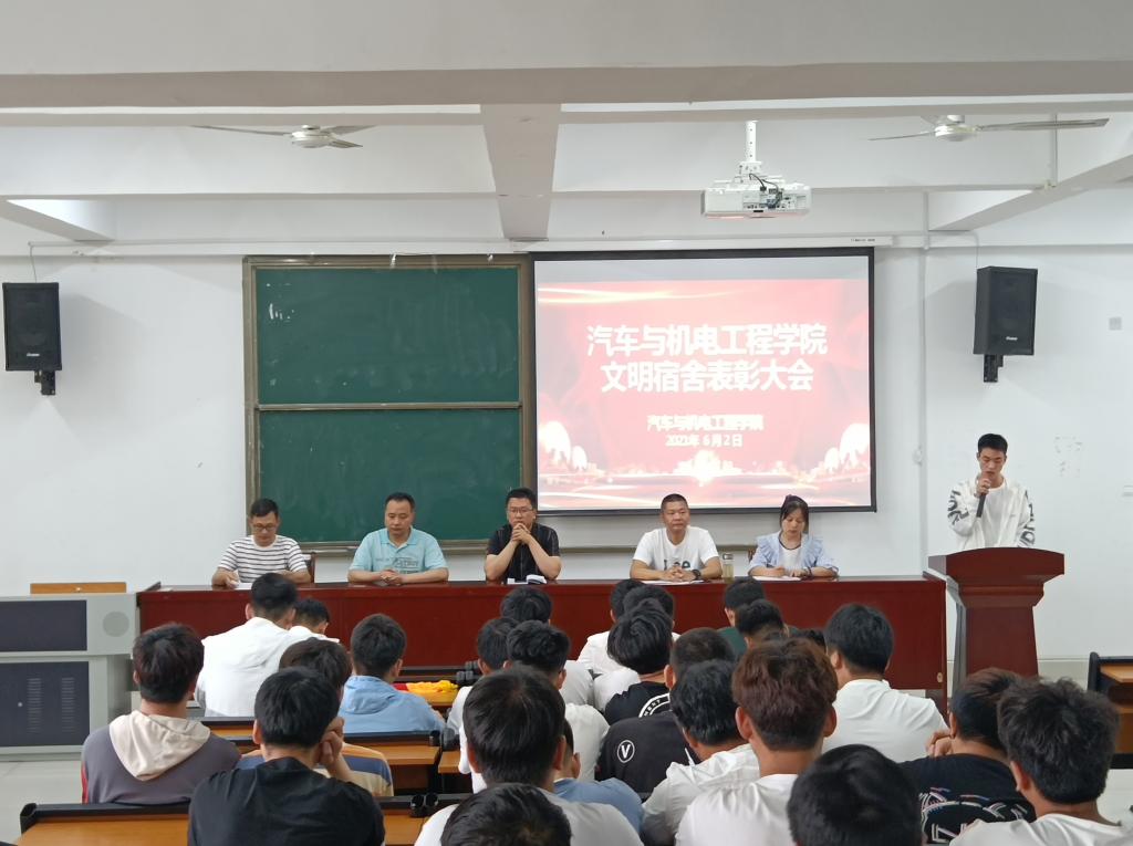 6月3日下午,HAOBO.COM_好博(中国)在道德讲堂召开了文明宿舍表彰大会。党总支书记代翔、副院长冷靖、办公室主任张礼涛、学管秘书李竹婷、全体辅导员与105名寝室长共同参加了本次表彰大会。