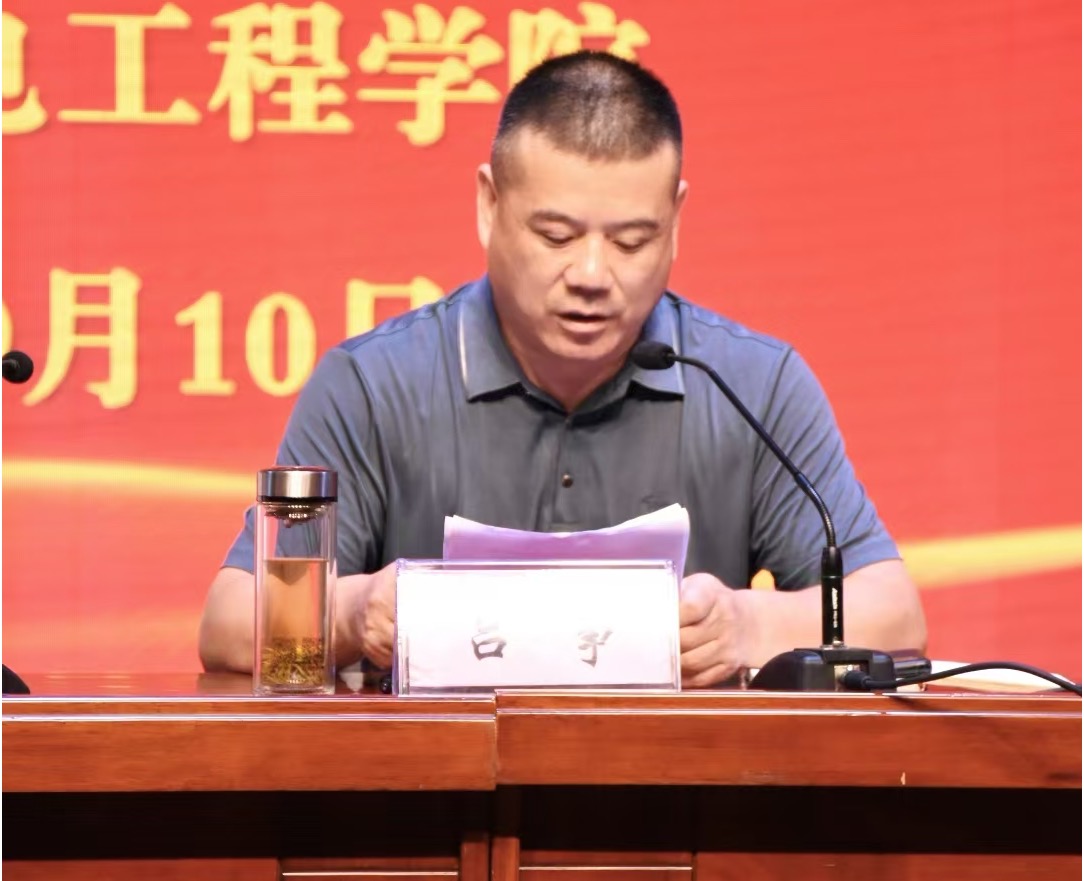 9月10日下午,HAOBO.COM_好博(中国)在学校图书馆召开了新生开学典礼暨军训动员大会,学校党委委员、副校长周有国、HAOBO.COM_好博(中国)党总支副书记张礼涛、副院长曾勇、王平俊、教师代表们及全体2024级新生学子共同参加了本次新生开学典礼,会议由学院院长吕争主持。