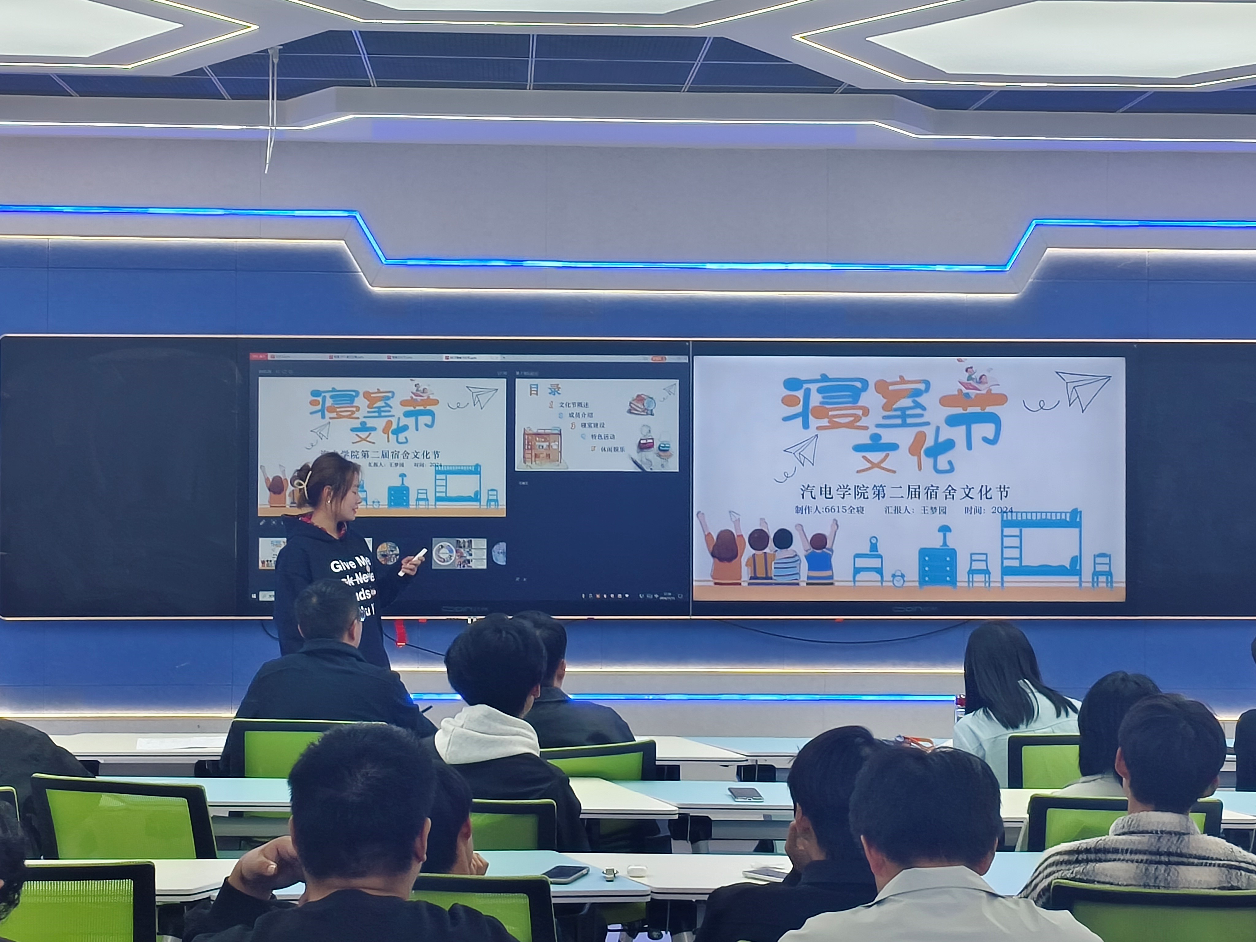 为丰富校园文化生活,提升学生的团队合作精神与创新能力,展现当代大学生的风采,营造和谐、温馨、富有特色的宿舍文化氛围,11月11日下午,我院在智慧教室2007成功举办了一场别开生面的宿舍文化节活动。出席活动的有HAOBO.COM_好博(中国)书记朱燕鸣、副院长曾勇、辅导员沈广旭、朱凯,活动由沈广旭主持。